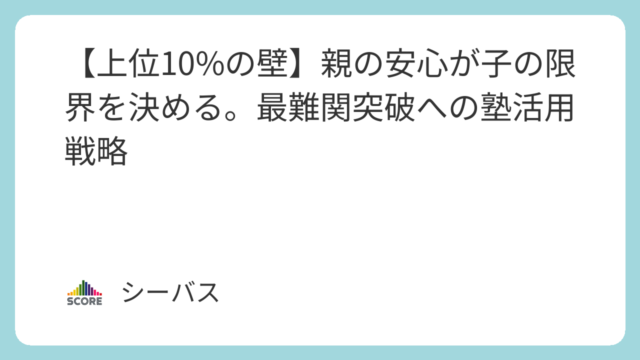 【上位10%の壁】親の安心が子の限界を決める。最難関突破への塾活用戦略