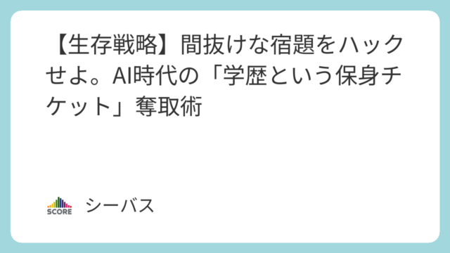 【生存戦略】間抜けな宿題をハックせよ。AI時代の「学歴という保身チケット」奪取術